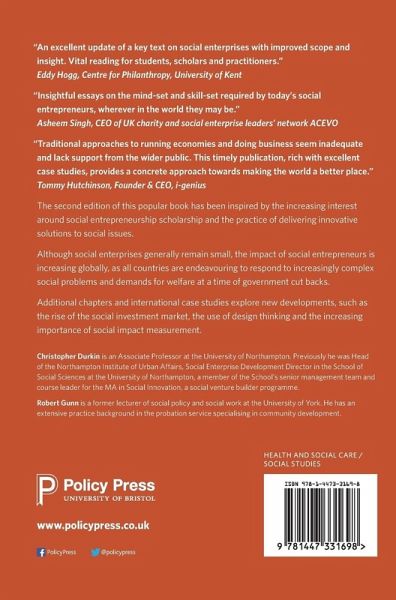 Christopher Durkin is an Associate Professor at the University of Northampton. Previously he was Head of the Northampton Institute of Urban Affairs, Social Enterprise Development Director in the School of Social Sciences at the University of Northampton, a member of the School's senior management team and course leader for the MA in Social Innovation, a social venture builder programme. Robert Gunn is a former lecturer of social policy and social work at the University of York, who has an extensive practice background in the probation service specialising in community development.