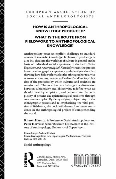 Anthropology poses an explicit challenge to standard notions of scientific knowledge. It claims to produce genuine insights into the workings of culture in general on the basis of individual social experience in the field. Social Experience and Anthropological Knowledge traces the process from the ethnographic experience to the analytical results, showing how fieldwork enables the ethnographer to arrive at an understanding, not only of `culture' and `society', but also of the processes by which cultures and societies are transformed. The contributors challenge the distinction between subjectivity and objectivity, redefine what we should mean by `empirical' and demonstrate the complexity of present-day epistemological problems through concrete examples. By demystifying subjectivity in the ethnographic process and re-emphasizing the vital position of fieldwork, they do much to renew confidence in the anthropological project of comprehending the world.