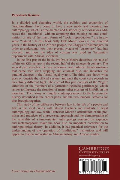 In this book, Sally Falk Moore examines a hundred years in the history of an African people, the Chagga of Kilimanjaro, in order to understand how their present system of 'customary' laws came to be the way it is, and how the idea of custom was used in Tanzania's experiment with African socialism. She discusses the changes that have occurred in the formal legal system, alongside the vast economic and political transformations that came with cash cropping and colonial rule. She also presents a 'legal' chronicle of the members of one lineage to illustrate its use of the formal legal system. This study of the difference between law in the life of a people and law in the local courts will interest teachers and students of legal anthropology and law and also provides an important contribution to anthropological theory. In addition it has practical relevance for the understanding of the operation of 'traditional' institutions and will appeal to readers interested in African history and African studies.