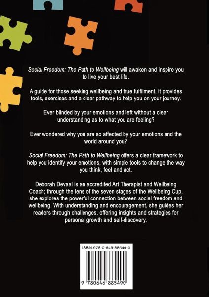 Social Freedom: The Path to Wellbeing will awaken and inspire you to live your best life. A guide for those seeking wellbeing and true fulfilment, it provides tools, exercises and a clear pathway to help you on your journey. Ever blinded by your emotions and left without a clear understanding as to what you are feeling? Ever wondered why you are so affected by your emotions and the world around you? Social Freedom: The Path to Wellbeing offers a clear framework to help you identify your emotions, with simple tools to change the way you think, feel and act. Deborah Devaal is an accredited Art Therapist and Wellbeing Coach; through the lens of the seven stages of the Wellbeing Cup, she explores the powerful connection between social freedom and wellbeing. With understanding and encouragement, she guides her readers through challenges, offering insights and strategies for personal growth and self-discovery. Inside, you'll discover: - Practical tools to empower you to overcome obstacles and thrive. - A roadmap for navigating life's ups and downs with resilience. - Insightful perspectives and strategies for personal growth. - A transformative journey toward greater emotional and mental wellbeing. - Real-life case studies that bring the concepts to life. Social Freedom: The Path to Wellbeing will help you understand and navigate the complexities of emotional challenges and inspire you to live your best life.