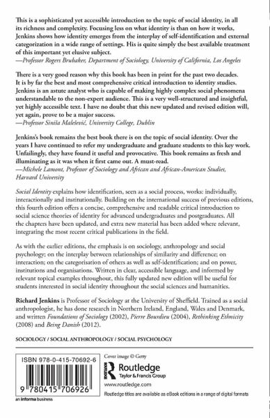 The fourth edition of Social Identity builds on the international success of previous editions, offering a concise, comprehensive and readable critical introduction to social science theories of identity for advance undergraduates and postgraduates.