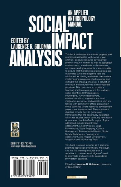 This book addresses the nature, purpose and processes associated with social impact analysis. Because resource development projects occur in human as well as ecological environments, stakeholders - landowners, companies and governments - are compelled to ensure that the benefits of any project are maximized while the negative risks are minimized. Achieving such objectives means implementing programs which monitor and evaluate the ongoing effects of a project on the social and cultural lives of the impacted populace. This book aims to provide a teaching and training resource for students, social scientists (anthropologists, sociologists, human geographers, environmentalists, engineers, etc.) and indigenous personnel and operators who are tasked with community affairs programs in those countries where resource development projects are implemented. The constituent chapters provide how-to guides and frameworks that are generously illustrated with case studies drawn variously from North America and the Asia-Pacific region. Topics addressed include Legal Frameworks and Compliance Procedures, Social Mapping, Environmental Reports, Social and Economic Impact Studies, Social Monitoring Techniques, Project Development, Statistical Packages and Report Production.This book is unique in so far as it seeks to prioritize application over theory. Moreover, it is the first training resource that is sensitive to non-western indigenes' need to assimilate and apply skills engendered by Western countries.
