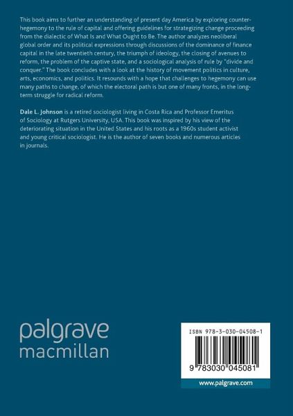This book aims to further an understanding of present day America by exploring counter-hegemony to the rule of capital and offering guidelines for strategizing change proceeding from the dialectic of What Is and What Ought to Be. The author analyzes neoliberal global order and its political expressions through discussions of the dominance of finance capital in the late twentieth century, the triumph of ideology, the closing of avenues to reform, the problem of the captive state, and a sociological analysis of rule by "divide and conquer." The book concludes with a look at the history of movement politics in culture, arts, economics, and politics. It resounds with a hope that challenges to hegemony can use many paths to change, of which the electoral path is but one of many fronts, in the long-term struggle for radical reform.