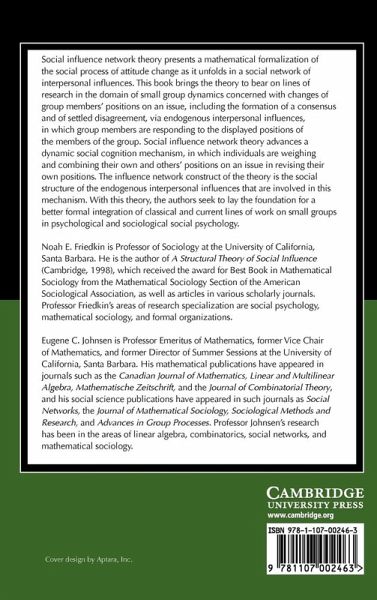 "Social Influence Network Theory pivots on a process model of attitude formation and change that accords pride of place to interpersonal influences mediated by social connections. Friedkin and Johnsen bring contemporary social network theory to bear on fundamental and long-standing puzzles about group process and functioning, including consensus formation, polarization, factionalization, and decision making. Their book - a potent and welcome contribution to social network science - both demands and gives serious attention to how and why 'network effects' operate, on individuals and groups alike." - Peter V. Marsden, Harvard University