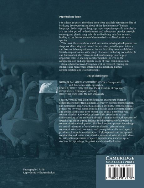 of learning in bird songs Robert B. Payne and Laura L. Payne; 6. Vocal