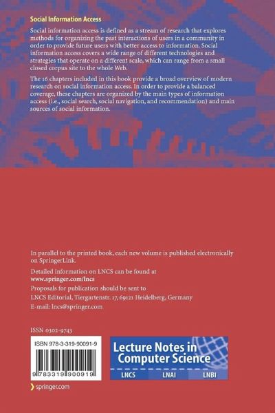 The 16 chapters included in this book provide a broad overview of modern research on social information access. In order to provide a balanced coverage, these chapters are organized by the main types of information access (i.e., social search, social navigation, and recommendation) and main sources of social information.