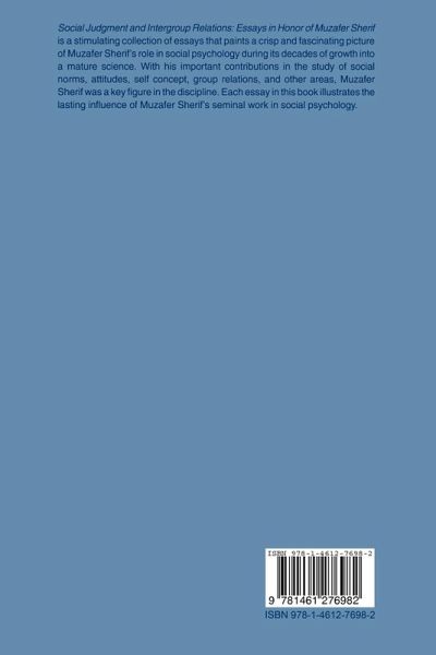 Social Judgment and Intergroup Relations: Essays in Honor of Muzafer Sherif is a stimulating collection which paints a crisp and fascinating picture of social psychology during its decades of growth into a mature science. With his important contributions in the study of social norms, attitudes, self concept, group relations, and other areas, Muzafer Sherif was a key figure in the discipline. Each essay in this book illustrates the lasting influence of Muzafer Sherif's seminal work in social psychology.