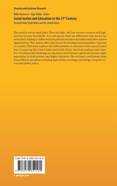 The world is not an equal place. There are high- and low-income countries and high- and low-income households. For each group, there are differential educational opportunities, leading to differential educational outcomes and differential labor market opportunities. This pattern often reproduces the privileges and inequalities of groups in a society. This book explores this differentiation in education from a social justice lens. Comparing the United States and South Africa, this book analyzes each country's developmental thinking on education, from human capital and human rights approaches, in both primary and higher education. The enclosed contributions draw from different disciplines including legal studies, sociology, psychology, computer science and public policy.