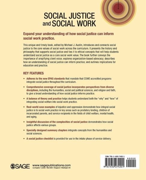 Social Justice and Social Work: Rediscovering a Core Value of the Profession introduces and connects social justice to the core values of social work across the curriculum. This unique and timely book, edited by Michael J. Austin, presents the history and philosophy that supports social justice and ties it to ethical concepts that will help readers understand social justice as a core social work value. The book further conveys the importance of amplifying client voice; explores organization-based advocacy; and describes how an understanding of social justice can inform practice and outlines implications for education and practice.