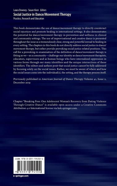 This book demonstrates the use of dance/movement therapy to directly counteract social injustices and promote healing in international settings. It also demonstrates the potential for dance/movement therapy in prevention and wellness in clinical and community settings. The use of improvisational and creative dance is presented throughout the book as a tremendously clear, strong and powerful inroad to healing in every setting. The chapters in this book do not directly address social justice in dance/movement therapy, but rather provide provoking social justice related positions. This call for a provoking re-examination of the definition of dance/movement therapy is fitting as we-as a community-challenge our identity as dance/movement therapists, educators, supervisors and as human beings who have internalized oppression in various forms through our many identifiers and the unique intersections of those identifiers. The editors and authors posit that social justice cannot be fully addressed by focusing solely on the social issues. Rather, we must be aware of where and how the social issues come into the individual(s), the setting, and the therapy process itself.