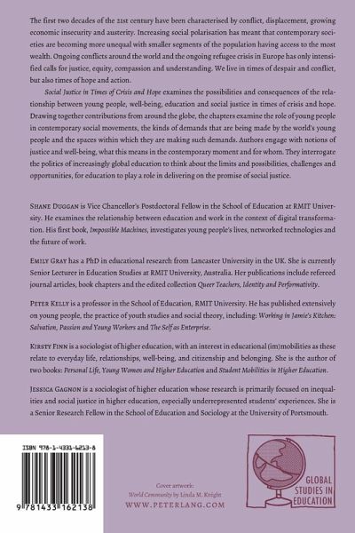Social Justice in Times of Crisis and Hope examines the possibilities and consequences of the relationship between young people, well-being, education and social justice in times of crisis and hope. Drawing together contributions from around the globe, the chapters examine the role of young people in contemporary social movements, the kinds of demands that are being made by the world's young people and the spaces within which they are making such demands. Authors engage with notions of justice and well-being, what this means in the contemporary moment and for whom. They interrogate the politics of increasingly global education to think about the limits and possibilities, challenges and opportunities, for education to play a role in delivering on the promise of social justice.