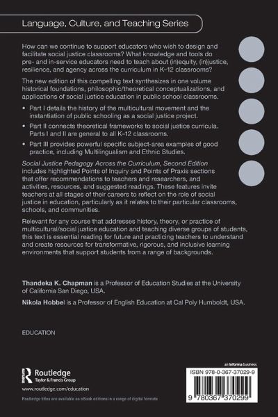 Social Justice Pedagogy Across the Curriculum, Second Edition includes highlighted Points of Inquiry and Points of Praxis sections that offer recommendations to teachers and researchers, and activities, resources, and suggested readings. These features invite teachers at all stages of their careers to reflect on the role of social justice in education, particularly as it relates to their particular classrooms, schools, and communities.