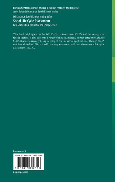 This book highlights the Social Life Cycle Assessment (SLCA) of the energy and textile sectors. It also presents a range of models, indices, impact categories, etc. for SLCA that are currently being developed for industrial applications. Though SLCA was introduced in 2010, it is still relatively new compared to environmental life cycle assessment (ELCA).