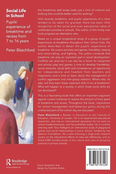 Are breaktimes really just a time of violence and bullying that could be better used for working? Based on a unique and fascinating longitudinal study of a group of pupils from primary to secondary school, the author of this timely new book proposes an alternative view. He believes that breaktime plays an important part in children's social development, and through his gathering of pupil's own views on breaktimes over a period of ten years, we see how breaktimes offer children time to play; to develop friendships; to build social networks; to develop social skills and competence; to be independent from adults; and to learn to manage conflict, aggression and inter-group relations. Where else will they learn these important skills if not in the playground? What will happen in a society where these skills are not developed?