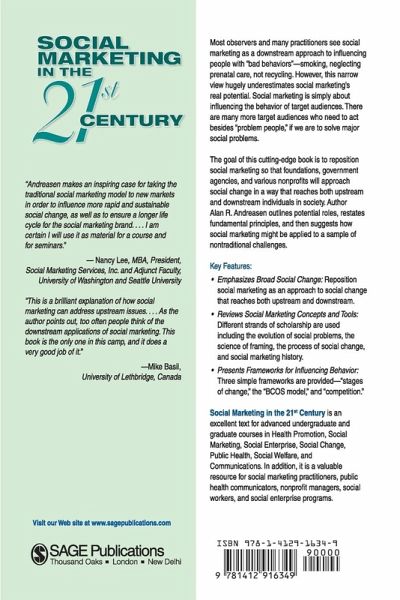 The goal of this cutting edge book is to reposition social marketing so that foundations, government agencies, and various nonprofits will approach social change in a way that reaches both upstream and downstream individuals in society. Author Alan R. Andreasen outlines potential roles, restates fundamental principles, and then suggests how social marketing might be applied to a sample of nontraditional challenges.
