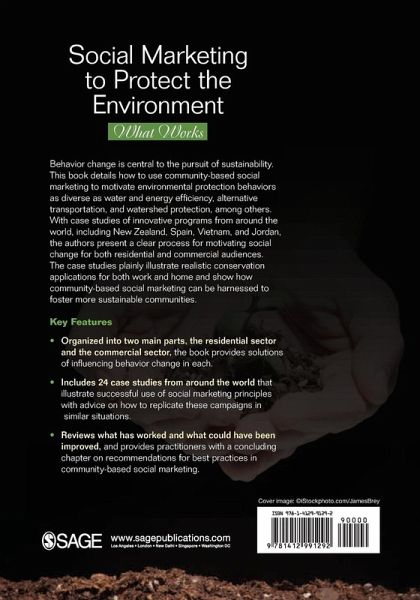 Behavior change is central to the pursuit of sustainability. This book details how to use community-based social marketing to motivate environmental protection behaviors as diverse as water and energy efficiency, alternative transportation, and watershed protection. With case studies of innovative programs from around the world, including the United States, Canada Australia, Spain, and Jordan, the authors present a clear process for motivating social change for both residential and commercial audiences. The case studies plainly illustrate realistic conservation applications for both work and home and show how community-based social marketing can be harnessed to foster more sustainable communities.