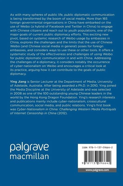 As with many spheres of public life, public diplomatic communication is being transformed by the boom of social media. More than 165 foreign governmental organisations in China have embarked on the use of Weibo (a hybrid of Facebook and Twitter in China) to engage with Chinese citizens and reach out to youth populations, one of the major goals of current public diplomacy efforts. This exciting new pivot, based on systemic research of Weibo usage by embassies in China, explores the challenges and the limits that the use of Chinese Weibo (and Chinese social media in general) poses for foreign embassies, and considers ways to use these or other tools. It offers a systematic study of the effectiveness and challenges of using Weibo for public diplomatic communication in and with China. Addressing the challenges of e-diplomacy, it considers notably the occurrence of cyber-nationalism on Weibo and encourages a critical look at its practice, arguing how it can contribute to the goals of public diplomacy.