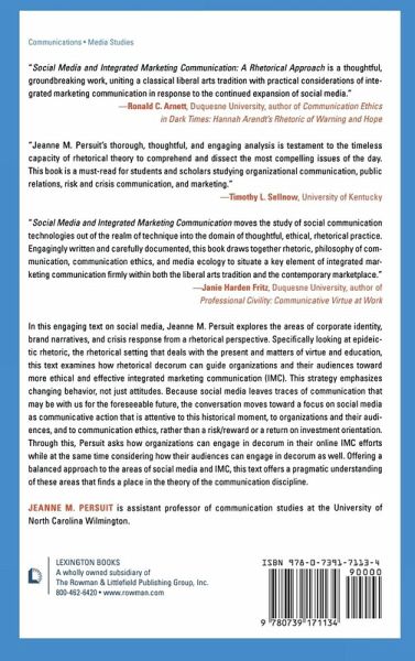 Social Media and Integrated Marketing Communication: A Rhetorical Approach looks at social media in the theory and practice of integrated marketing communication, with a theoretical grounding in rhetoric. Understanding social media as epideictic rhetoric can offer a temperate and informed perspective of the implications of social media in IMC.