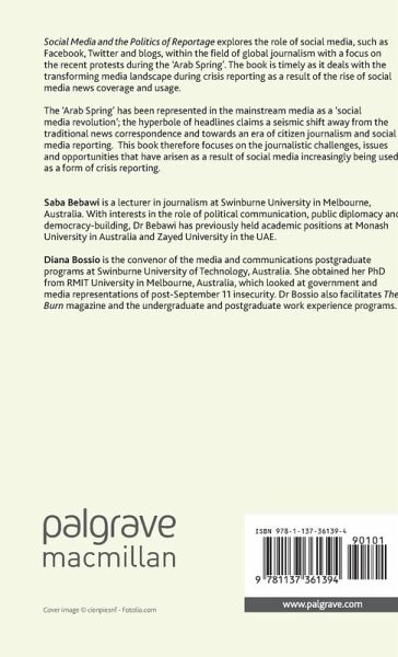 Social Media and the Politics of Reportage explores the journalistic challenges, issues and opportunities that have risen as a result of social media increasingly being used as a form of crisis reporting within the field of global journalism, with a focus on the protests during the 'Arab Spring'.