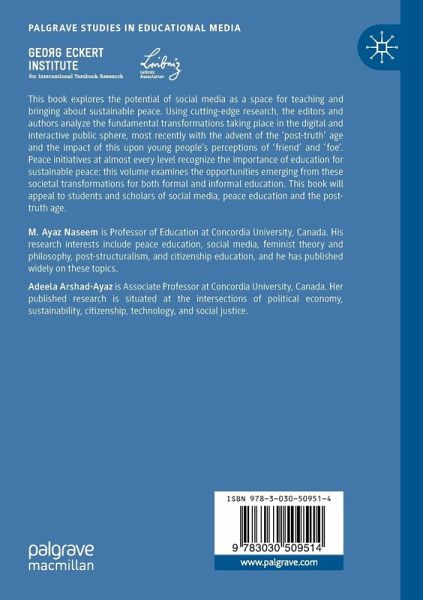 This book explores the potential of social media as a space for teaching and bringing about sustainable peace. Using cutting-edge research, the editors and authors analyze the fundamental transformations taking place in the digital and interactive public sphere, most recently with the advent of the 'post-truth' age and the impact of this upon young people's perceptions of 'friend' and 'foe'. Peace initiatives at almost every level recognize the importance of education for sustainable peace: this volume examines the opportunities emerging from these societal transformations for both formal and informal education. This book will appeal to students and scholars of social media, peace education and the post-truth age.