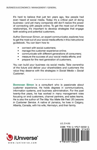 It's hard to believe that just ten years ago, few people had even heard of social media. Today it's a critical part of doing business-and yet many companies still don't realize the power of connecting with people online. To get the most out of these relationships, it's important to develop strategies that engage both existing and potential customers. Author Donnovan Simon, an expert communicator, explores how to get the most out of your social media efforts in this instructional guidebook. You can learn how to ¿ connect with social customers; ¿ manage the customer experience online; ¿ communicate with different generations of consumers; ¿ measure the success of your social media efforts; and ¿ prepare for the next generation of customers. You can build your business via social media. Take ownership of the future and deliver your shareholders and customers the value they deserve with the strategies in Social Media Equals Social Customer.