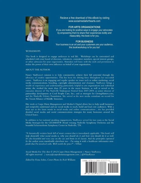 An empowering guide for both arts organizations and their audiences as they come to the realization of influence. FOR ARTS ORGANIZATIONS: If you are looking for positive ways to engage your advocates by empowering them to share their experiences boldly and measurably, this book is for you. ALL BUSINESS: Your work is an art form and your customers are an audience, these tools apply to you too! This is a larger format printing of an eBook available exclusively at http://www.nancyvanreece.com. Get the paper copy and use the pages as posters or take notes in it!