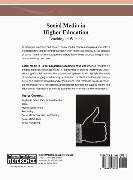 In today's businesses and society, social media continues to play a vital role in the transformation of communication into an interactive dialogue. The success of social media has encouraged the integration of these aspects in higher education teaching practices. Social Media in Higher Education: Teaching in Web 2.0 provides research on the pedagogical challenges faced in recent years in order to improve the understanding of social media in the educational systems. It will highlight the levels of education ranging from learning centered on the student to the collaboration between academic networks and organizations. This reference source is essential for practitioners, researchers, and students interested in gaining insight into educational institutions as well as academic communities and environments.