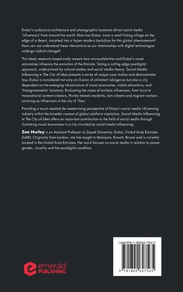 Providing a much-needed de-Westernising perspectives of Dubaiâ s social media influencing industry within the broader context of global platform capitalism, Zoe Hurley offers an important contribution to the field of social media through illustrating visible economies in a city circuited by social media influencing.