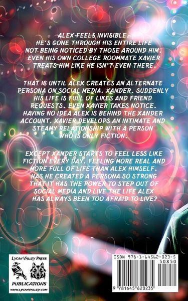 Alex feels invisible. He's gone through his entire life not being noticed by those around him. Even his own college roommate Xavier treats him like he isn't even there. That is until Alex creates an alternate persona on social media, Xander. Suddenly his life is full of likes and friend requests. Even Xavier takes notice. Having no idea Alex is behind the Xander account, Xavier develops an intimate and steamy relationship with a person who is only fiction. Except Xander starts to feel less like fiction every day, feeling more real and more full of life than Alex himself. Has he created a persona so strong that it has the power to step out of social media and live the life Alex has always been too afraid to live?
