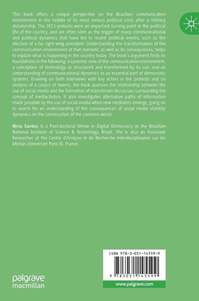 This book offers a unique perspective on the Brazilian communication environment in the middle of its most serious political crisis after a military dictatorship. The 2013 protests were an important turning point in the political life of the country, and are often seen as the trigger of many communicational and political dynamics that have led to recent political events, such as the election of a far right wing president. Understanding the transformation of the communication environment at that moment, as well as its consequences, helps to explain what is happening in the country today. The book's argument finds its foundations in the following: a systemic view of the communication environment, a conception of technology as structured and transformed by its use, and an understanding of communicational dynamics as an essential part of democratic systems. Drawing on both interviews with key actors in the protests and on analysis of a corpus of tweets, the book assesses the relationship between the use of social media and the formation of mainstream discourses surrounding the concept of mediactivism. It also investigates alternative paths of information made possible by the use of social media when new mediators emerge, going on to search for an understanding of the consequences of social media visibility dynamics on the construction of the common world.