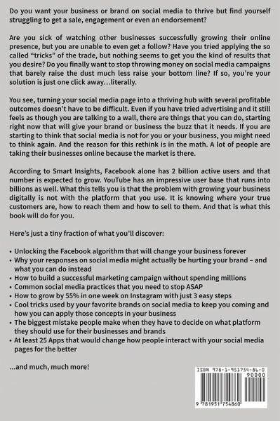 If you want to explode your business growth with social media marketing, then keep reading… Do you want your business or brand on social media to thrive but find yourself struggling to get a sale, engagement or even an endorsement? Are you sick of watching other businesses successfully growing their online presence, but you are unable to even get a follow? Have you tried applying the so called "tricks" of the trade, but nothing seems to get you the kind of results that you desire? Do you finally want to stop throwing money away on social media campaigns that barely raise the dust much less raise your bottom line? If so, your solution is just one click away…literally. You see, turning your social media page into a thriving hub with several profitable outcomes doesn’t have to be difficult. Even if you have tried advertising and it still feels as though you are talking to a wall, there are things that you can do, starting right now that will give your brand or business the buzz that it needs. If you are starting to think that social media is not for you or your business, you might need to think again. And the reason for this rethink is in the math. A lot of people are taking their businesses online because the market is there. According to Smart Insights, Facebook alone has 2 billion active users and that number is expected to grow. YouTube has an impressive user base that runs into billions as well. What this tells you is that the problem with growing your business digitally is not with the platform that you use. It is knowing where your true customers are, how to reach them and how to sell to them. And that is what this book will do for you. Here’s just a tiny fraction of what you’ll discover: Unlocking the Facebook algorithm that will change your business forever Why your responses on social media might actually be hurting your brand – and what you can do instead How to build a successful marketing campaign without spending millions Common social media practices that you need to stop ASAP How to grow by 55% in one week on Instagram with just 3 easy steps Cool tricks used by your favorite brands on social media to keep you coming and how you can apply those concepts in your business The biggest mistake people make when they have to decide on what platform they should use for their businesses and brands At least 25 Apps that would change how people interact with your social media pages for the better ...and much, much more! This 3 Books in 1 Collection Includes the best books to help you learn, grow, and master Social Media Marketing. Books Included: Social Media Marketing 2020: Cutting-Edge Strategies to Grow Your Personal Brand, Reach Millions of Customers, and Become an Expert Influencer with Facebook, Twitter, YouTube and Instagram Social Media Marketing 2020 : How to Crush it with Instagram Marketing - Proven Strategies to Build Your Brand, Reach Millions of Customers, and Grow Your Business Without Wasting Time and Money Social Media Marketing 2019: How Great Marketers Stand Out from The Crowd, Reach Millions of People, and Grow Their Business with Facebook, Twitter, YouTube, and Instagram - and How You Can, Too So, what are you waiting for? Scroll up, click "BUY NOW" and launch your business into its most profitable season!