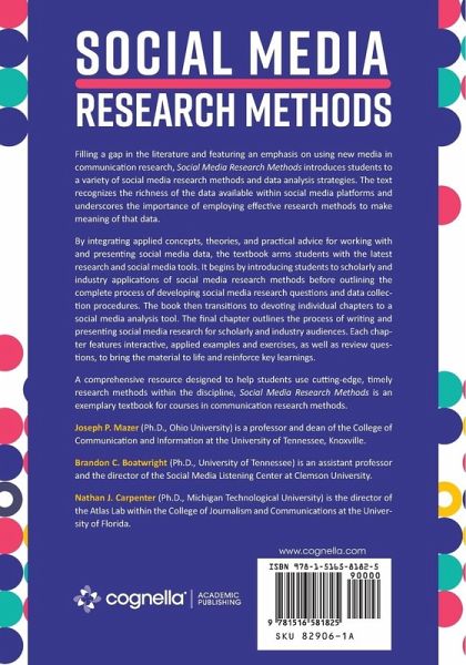 Filling a gap in the literature and featuring an emphasis on using new media in communication research, Social Media Research Methods introduces students to a variety of social media research methods and data analysis strategies. The text recognizes the richness of the data available within social media platforms and underscores the importance of employing effective research methods to make meaning of that data. By integrating applied concepts, theories, and practical advice for working with and presenting social media data, the textbook arms students with the latest research and social media tools. It begins by introducing students to scholarly and industry applications of social media research methods before outlining the complete process of developing social media research questions and data collection procedures. The book then transitions to devoting individual chapters to a social media analysis tool. The final chapter outlines the process of writing and presenting social media research for scholarly and industry audiences. Each chapter features interactive, applied examples and exercises, as well as review questions, to bring the material to life and reinforce key learnings. A comprehensive resource designed to help students use cutting-edge, timely research methods within the discipline, Social Media Research Methods is an exemplary textbook for courses in communication research methods.