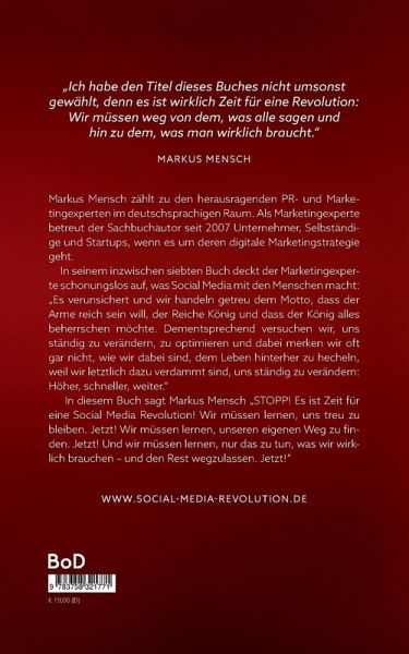 Markus Mensch, ein renommierter Marketingexperte, Autor und Podcaster, hat sich im Laufe seiner beeindruckenden Karriere als unverzichtbarer Leitstern im Bereich des organischen Markenaufbaus etabliert. Mit über einem Jahrzehnt Erfahrung in der Selbstständigkeit und der Begleitung von über 1.000 Unternehmen, verkörpert er die Schnittstelle zwischen fundiertem Marketingwissen und praxisorientierter Expertise. Seine Arbeit, die sich durch eine zielgerichtete und lösungsorientierte Herangehensweise auszeichnet, hat zahlreichen Selbstständigen und Unternehmern geholfen, ihre Marketingstrategien zu revolutionieren. Markus Mensch ist mehr als nur ein Experte - er ist ein Visionär, der die Bedeutung der Selbstvermarktung und des klaren Zielsetzens nicht nur versteht, sondern lebt. Seine Fähigkeit, komplexe Marketingkonzepte in verständlicher Sprache zu kommunizieren, macht ihn zu einem gefragten Redner und Podcaster. Seine Vorträge und Podcasts sind ein Schmelztiegel aus Inspiration, Fachwissen und praktischen Ratschlägen, die jedermann umsetzen kann. In seinem neuesten Werk Social Media Revolution für Einsteiger vereint Markus Mensch seine beruflichen Erfahrungen und persönlichen Erkenntnisse zu einer inspirierenden Erzählung. Hier öffnet er nicht nur die Tür zu seiner Welt des Marketings, sondern gibt auch einen tiefen Einblick in seine persönliche Reise als Influencer. Dieses Buch ist nicht nur eine Reflexion seiner beruflichen Erfolge, sondern auch ein Zeugnis seines unermüdlichen Strebens nach Wachstum. Die Social Media Revolution ist das siebte Buch in Markus Menschs beeindruckendem Repertoire. Hier zeigt er, dass Erfolg mehr ist als nur die Summe von Marketingstrategien - es ist eine Lebenshaltung. Durch die Kombination seines umfassenden Marketingwissens mit persönlichen Erfahrungen und Einsichten, schafft Markus Mensch eine authentische und motivierende Lektüre, die Leserinnen und Leser dazu anregt, über ihre eigenen Grenzen hinauszugehen. Dieses Buch ist ein Muss für jeden der am Anfang steht, der nach Inspiration und konkreten Wegen sucht, sein Social-Media-Potenzial voll auszuschöpfen. Markus Mensch demonstriert eindrucksvoll, dass die richtige Einstellung, gepaart mit dem nötigen Fachwissen, der Schlüssel zum Erfolg ist. Seine Fähigkeit, sowohl die Höhen als auch die Tiefen seines Weges offen zu teilen, macht ihn zu einem wahren Experten - nicht nur im Marketing, sondern auch in der Kunst des Lebens.