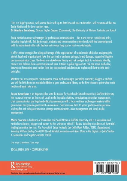 Social media has many advantages for professional communication - but it also carries considerable risks, including legal pitfalls. This book equips students and communication professionals with the knowledge and skills to help minimise the risks that can arise when they post or host on social media.