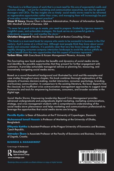 "This is an important and timely book. It addresses a major digital age phenomenon--social media storms--that has vital implications for marketing practitioners and academics. Based on strong theoretical foundations, the authors demonstrate how managers and organizations should engage with stakeholders not only to weather social media storms, but also to take advantage of them and to strengthen customer engagement. The book is full of real-life examples and useful case studies. It should be an interesting read for everyone who wants to understand what social media storms are and how they should be managed."