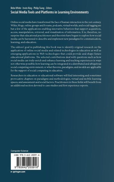 The editors' goal in publishing this book was to identify original research on the application of online social media and related technologies in education as well as emerging applications in Web technologies that could provide and shape future educational platforms. The selected contributions deal with questions such as how social media can truly enrich and enhance learning and teaching experiences in ways not otherwise possible; howlearning can be integrated in a distributed and ubiquitous social computing environment; or what theories, paradigms, and models are applicable for the support of social computing in education. Researchers in education or educational software will find interesting and sometimes provocative chapters on paradigms and methodologies, virtual and mobile learning spaces, and assessment and social factors. Practitioners in these fields will benefit from an additional section devoted to case studies and first experience reports.