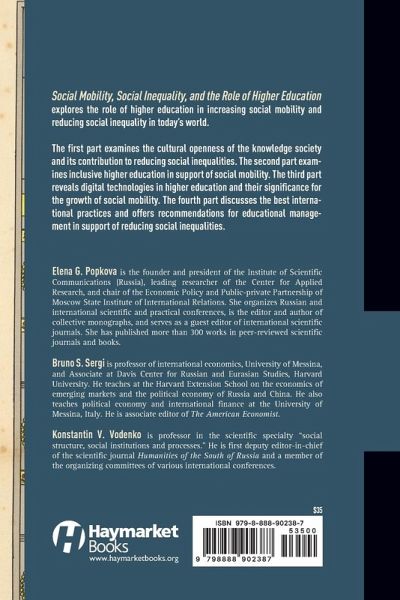 Social Mobility, Social Inequality, and the Role of Higher Education explores the role of higher education in increasing social mobility and reducing social inequality in today's world. The first part examines the cultural openness of the knowledge society and its contribution to reducing social inequalities. The second part examines inclusive higher education in support of social mobility. The third part reveals digital technologies in higher education and their significance for the growth of social mobility. The fourth part discusses the best international practices and offers recommendations for educational management in support of reducing social inequalities.