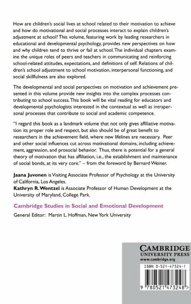 How are children's social lives at school related to their motivation to achieve and how do motivational and social processes interact to explain children's adjustment at school? This volume, featuring work by leading researchers in educational and developmental psychology, provides new perspectives on how and why children tend to thrive or fail at school. The individual chapters examine the unique roles of peers and teachers in communicating and reinforcing school-related attitudes, expectations, and definitions of self. Relations of children's school adjustment to school motivation, interpersonal functioning, and social skillfulness are also explored. The developmental and social perspectives on motivation and achievement presented in this volume provide new insights into the complex processes contributing to school success.