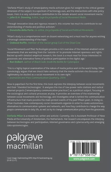 'Social Movements and Their Technologies is a highly topical examination of the nature of media justice work in the world today, and Milan convincingly argues that we should take seriously that the media activism she discusses can legitimately be studied as a social movement in its own right.' - Journalism and Mass Communication Quarterly, 2014
