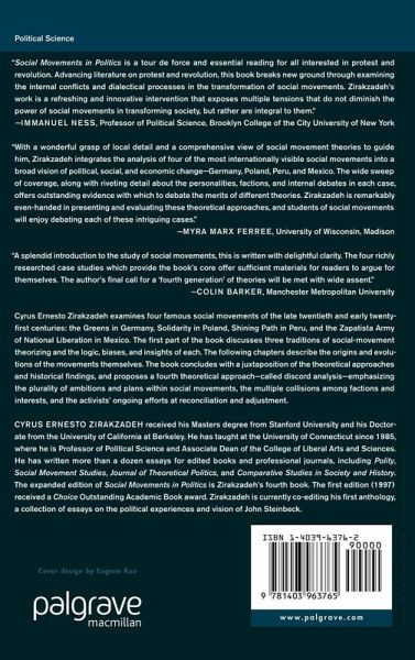 "Social Movements in Politics is a tour de force and essential reading for all interested in protest and revolution. Advancing literature on protest and revolution, this book breaks new ground through examining the internal conflicts and dialectical processes in the transformation of social movements. Zirakzadeh's work is a refreshing and innovative intervention that exposes multiple tensions that do not diminish the power of social movements in transforming society - but are integral to them." - Immanuel Ness, Professor of Political Science, Brooklyn College of the City University of New York and editor ofEncyclopedia of American Social Movements"With a wonderful grasp of local detail and a comprehensive view of social movement theories to guide him, Zirakzadeh integrates the analysis of social movements into a broad vision of political, social and economic change. He provides a close look at four of the most internationally visible movements - Germany s Greens, Poland s Solidarity, Peru s Shining Path, and Mexico s Zapatistas - that have led significant political challenges to their national governments. The focus on such prominent and internationally important cases is unique as is the analytical balance Zirakzadeh strikes between the analysis of their distinctive political opportunities and strategic and ideological choices as movements. The wide sweep of coverage along with riveting detail about the personalities, factions and internal debates in each case offers outstanding evidence with which to debate the merits of different theories. Zirakzadeh is remarkably even-handed in presenting and evaluating these theoretical approaches himself, and students of social movements will enjoy debating each of these intriguing cases." - Myra Marx Ferree, University of Wisconsin - Madison"A splendid introduction to the study of social movements, this is written with delightful clarity. The four richly researched case studies which provide the book's core offer sufficient materials for readers to argue for themselves. The author's final call for a 'fourth generation' of theories will meet with wide assent." - Colin Barker, Manchester Metropolitan University"This book is the magnum opus of a scholar who has for many years been publishing seminal works on problems arising from the ethnic heterogeneity of states. Only one with such a background could produce a volume so rich in its variety of source-material and so penetrating in its analyses. Innovations include a two-fold classification of ethnic groups predicated upon whether they are living within or without their ethnic homeland, a classification permitting the author to transcend the cleavage between ethnonationalism and ethnicity; a tripartite division of states into mature democratic, post-communist, and emerging categories; and, for each of these three categories, a combination of a wealth of illustrative data drawn from several states, further illustrated by an in-depth, single-state case study. Truly an important contribution to the literature." -