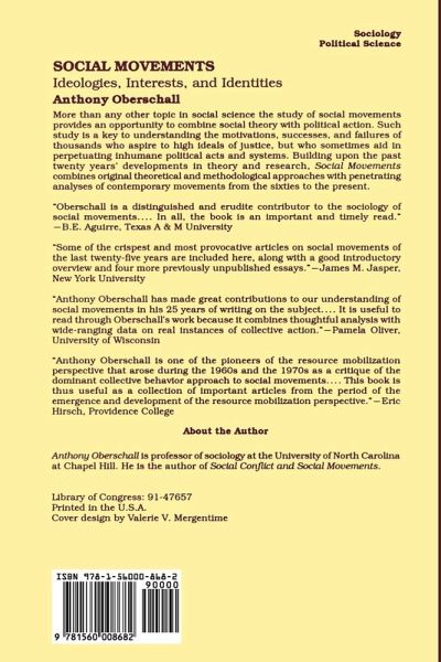 More than any other topic in social science, the study of social movements provides an opportunity to combine social theory with political action. Such study is a key to understanding the motivations, successes, and failures of thousands who aspire to high ideals of justice, but who sometimes aid in perpetuating inhumane political acts and systems. Building upon the past twenty years' developments in theory and research, Social Movements combines original theoretical and methodological approaches with penetrating analyses of contemporary movements from the sixties to the present.Anthony Oberschall argues that social movements are central to contemporary politics in both Western and Third World nations. They are not quaint stepchildren to public policy and social change that disappear as nations modernize. Collective action by the citizenry, spilling beyond the boundaries of routine politics is an integral part of the process of creative destruction that Joseph Schumpeter ascribed to modern capitalism and all dynamic, modern societies.Among the subjects that OberschaU examines in Social Movements are the Civil Rights movement, decline of the New Left, the feminist movement, the New Christian Right, the tobacco control movement, collective violence in U.S. industrial relations, and some comparative historical movements, including the Cultural Revolution in China, the abortive 1968 revolution in Czechoslovakia, political strife in postcolonial Africa, and the sixteenth-century European witch craze.In looking beyond the immediate political circumstances of these social movements, Oberschall points the way to achieving the next major task of social movement theory: a more satisfactory understanding of the dynamics and course of social movements and counter movements and a method of accounting for the outcomes of public controversies. Free of jargon and technical terminology, Social Movements is written for sociologists, political scientists, historians, professionals dea