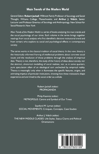 Preface; R.Jackall & A.J.Vidich - Acknowledgements - Notes on the Contributors - Introduction - PART 1: CLASSICAL PERSPECTIVES - The General Will; R.E.Park - The Religion of Progress; A.Salomon - PART 2: DISCIPLINARY APPROACHES - Social Movements and Social Order; R.Heberle - Social Movements; H.Blumer - Dramaturgy and Social Movements: The Social Construction and Communication of Power; R.D.Benford & S.A.Hunt - PART 3: CONCEPTUAL ISSUES: DEBATES AND CRITIQUES - What's So New About New Social Movements?; D.Plotke - Collective Protest: A Critique of Resource Mobilization Theory; F.F.Piven & R.Cloward - Social Movement Research in the United States: A European Perspective; M.Mayer - PART 4: CONTEMPORARY STUDIES - It Happened Here: Political Opportunity, the New Institutionalism, and the Townsend Movement; E.Amenta & Y.Zylan - Ideology as Episodic Discourse: The Case of the Iranian Revolution; M.Moaddel - AIDS, The Politically Correct, and Social Theory; D.Harris - Environmentalism and Human Emancipation; R.Brulle - PART 5: THE FUTURE OF SOCIAL MOVEMENTS - Rethinking the Sixties Legacy: From New Left to New Social Movements; C.Boggs - The Left as the Counter-Culture of Modernity; Z.Bauman - Beyond Social Movements?; A.Touraine - PART 6: CODA: SOCIAL MOVEMENTS IN SOCIOLOGICAL THOUGHT - Social Theory and Social Movements: Sociology as Sociodicy; S.M.Lyman - Index