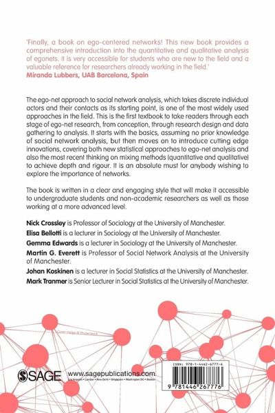 It starts with the basics, assuming no prior knowledge of social network analysis, but then moves on to introduce cutting edge innovations, covering both new statistical approaches to ego-net analysis and also the most recent thinking on mixing methods (quantitative and qualitative) to achieve depth and rigour. It is an absolute must for anybody wishing to explore the importance of networks.