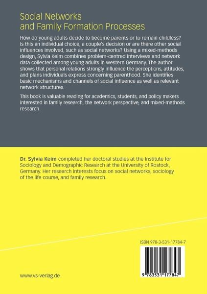 How do young adults decide to become parents or to remain childless? Is this an individual choice, a couple's decision or are there other social influences involved, such as social networks? Using a mixed-methods design, Sylvia Keim combines problem-centred interviews and network data collected among young adults in western Germany. The author shows that personal relations strongly influence the perceptions, attitudes, and plans individuals express concerning parenthood. She identifies basic mechanisms and channels of social influence as well as relevant network structures.