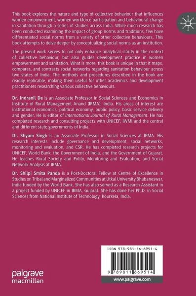 There are very few research works on understanding social norms that distinguishes it from a range of other collective behaviors. This understanding would not only improve analytical clarity on collective behavior in general and social norms in particular, in the context of gender and sanitation, but also improve development practice in these areas. This book is also novel as it would expound the social network in the context of sanitation behavior in India. The tools and techniques discussed in the book are replicable and hence would be helpful for other researchers and development practitioners to analyse other collective behaviours.