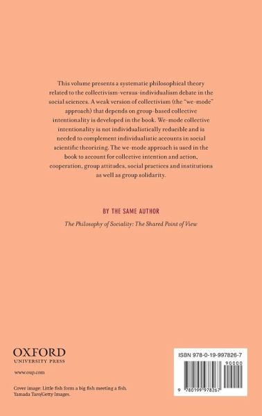 Social ontology, in its broadest sense, is the study of the nature of social reality, including collective intentions and agency. The starting point of Tuomela's account of collective intentionality is the distinction between thinking and acting as a private person ("I-mode") versus as a "we-thinking" group member ("we-mode"). The we-mode approach is based on social groups consisting of persons, which may range from simple task groups consisting of a few persons to corporations and even to political states. Tuomela extends the we-mode notion to cover groups controlled by external authority.…mehr