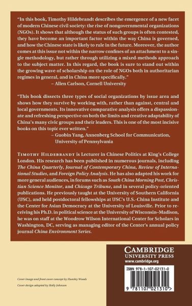 Received wisdom suggests that social organizations (such as non-government organizations, NGOs) have the power to upend the political status quo. However, in many authoritarian contexts, such as China, NGO emergence has not resulted in this expected regime change. In this book, Timothy Hildebrandt shows how NGOs adapt to the changing interests of central and local governments, working in service of the state to address social problems. In doing so, the nature of NGO emergence in China effectively strengthens the state, rather than weakens it. This book offers a groundbreaking comparative analysis of Chinese social organizations across the country in three different issue areas: environmental protection, HIV/AIDS prevention, and gay and lesbian rights. It suggests a new way of thinking about state-society relations in authoritarian countries, one that is distinctly co-dependent in nature: governments require the assistance of NGOs to govern while NGOs need governments to extend political, economic and personal opportunities to exist.
