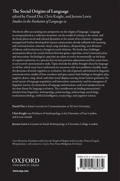 Daniel Dor has a PhD in Linguistics from Stanford University, and is Senior Lecturer in Communication at Tel Aviv University. His main interest lies in the development of a theory of language as a communication technology. Together with Eva Jablonka, he has written extensively on the evolution of language. In a different (but related) domain, Dor has published books and articles on the role of the media, and its language, in the construction of political hegemony. His Intifada Hits the Headlines was chosen as book of the year 2004 in communication by Choice Magazine. Chris Knight was for many years Professor of Anthropology at the University of East London, although he is now retired. Best known for his 1991 book, Blood Relations: Menstruation and the Origins of Culture, he co-founded the Evolution of Language (EVOLANG) series of international conferences and has published widely on the evolutionary emergence of language and symbolic culture. Jerome Lewis lectures in Social Anthropology at University College London and co-directs the Hunter-Gatherer Resilience Project, the Extreme Citizen Science Research Group and UCL's Environment Institute. His research focuses on Pygmy hunter-gatherers and former hunter-gatherers in Central Africa. Current research focuses on communication and cultural transmission in egalitarian hunter-gatherer societies.