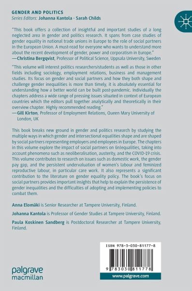 This book breaks new ground in gender and politics research by studying the multiple ways in which gender and intersectional equalities shape and are shaped by social partners representing employers and employees in Europe, as well as the relationships between those social partners. Little critical attention has been paid to these organizations, yet, as this volume illustrates, social partners are important actors in relation to gender and other inequalities at the level of both individual European countries and the European Union. The chapters in this volume explore the impact of social partners on (in)equalities in a variety of 21st-century political contexts, taking into account phenomena such as neoliberalisation, austerity, and the COVID-19 crisis. This volume adds a crucial dimension to studies on gender inequalities in the labour market, contributing to research on issues such as domestic work, the gender pay gap, and the persistent undervaluationof women's labour and feminized reproductive labour, in particular care work. It also represents a significant contribution to the literature on gender equality policy. The book's focus on social partners provides important insights that help to explain the persistence of gender inequalities and the difficulties of adopting and implementing policies to combat them. This volume should appeal to students and researchers of gender studies, politics, European politics, employment relations, and international relations, as well as to policymakers engaged in addressing gender inequalities in the labour market.