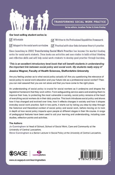 An understanding of social policy is crucial for social workers as it underpins and shapes the legislative framework that they work within. From safeguarding service users and enabling them to improve their lives, to protecting the most vulnerable in society, social policy also has a vital role to play within social work education. It is important therefore for students to engage critically with social policy. This book introduces policy and shows how it has changed and evolved over time, how it reflects changes in society and how it is applied to everyday practice.